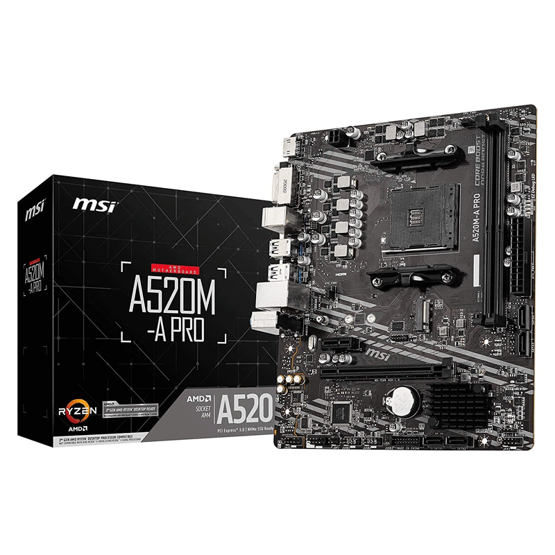 MSI A520M-A PRO Gaming Motherboard (AMD AM4, DDR4, PCIe 4.0, SATA 6Gb/s, Dual M.2, USB 3.2 Gen 1, DVI/HDMI, Micro-ATX)